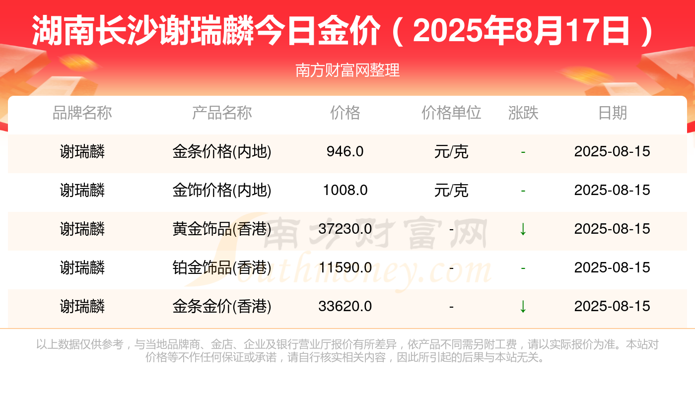 2025年8月17日湖南长沙谢瑞麟金价(多少钱一克)