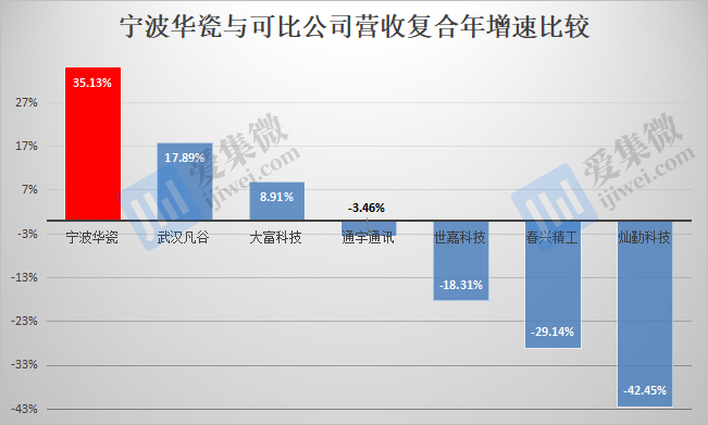 受益4G、5G等新一代移动通信技术快速普及发展,宁波华瓷近年来取得了不错的业绩表现,报告期各期分别实现盈利收入3.3亿元、3亿元、6.02亿元,复合年增速达35.13%,领先于武汉凡谷、大富科技等一众可比公司。