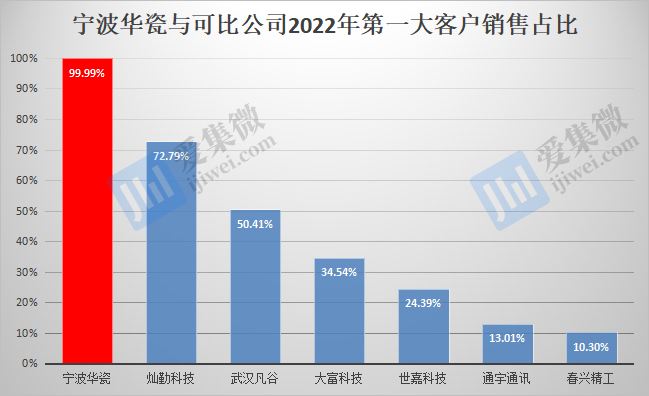 其中,A公司始终是宁波华瓷的第一大客户,报告期各期占主营业务营收比重分别为97.71%、93%和95.56%,存在客户高度集中以及单一客户重大依赖的情形。就业绩高度依赖单一客户,宁波华瓷解释称,主要是由于通信设施市场高度集中所致,其同时表示,可比公司中,同样存在高度依赖单一客户的情况。